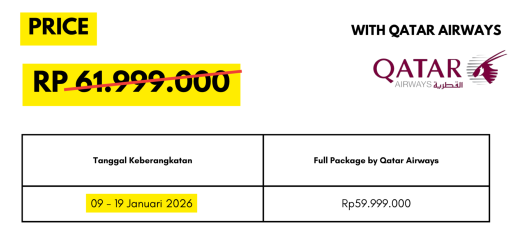- International Flight Ticket by Qatar Airways (QR) – untuk harga Full package